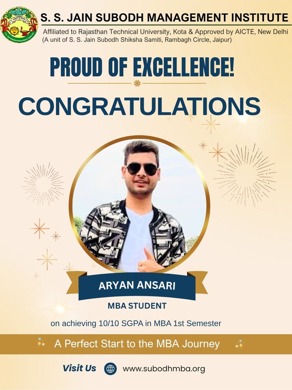 Congratulations Aryan Ansari, for scoring Full Marks in MBA First Semester!
