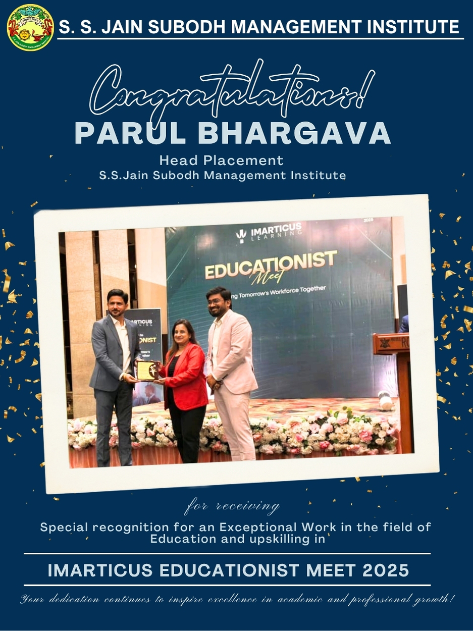 Congratulations Parul Bhargava, Head Placement, S.S.Jain Subodh Management Institute