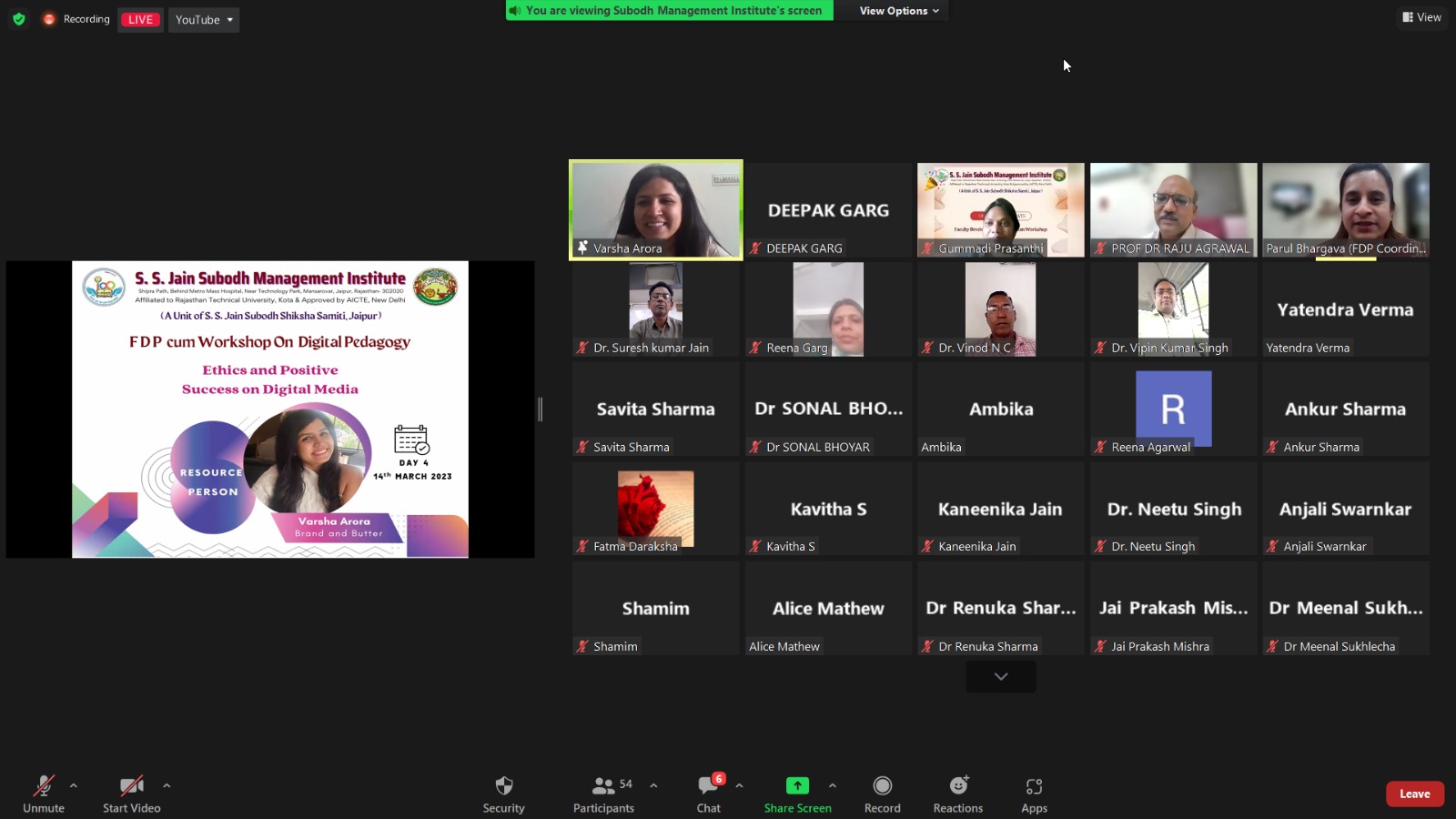 S. S. Jain Subodh Management Institute organized Workshop on 14th March 2023 on Ethics and Positive success on Digital Media collaboration with Brand and Butter. Ms. Varsha Arora (Founder of Brand and Butter) was the key note speaker of the day. She delivered the session on Ethics and Positive Success of Digital Media. She said Digital media is radically changing the way people communicate and influencing the thought processes and experiences of children and adults. New technologies pose a challenge to the educational process. The paper presents the results of the latest research on the impact of digital technology on the emotional, social, and moral development of children. School should respond to the challenges of the digital world by promoting self-respect among children, emotional development, community affiliation, creativity, and innovation. Furthermore, the key to the success of the educational process is the creative passion of the teacher.