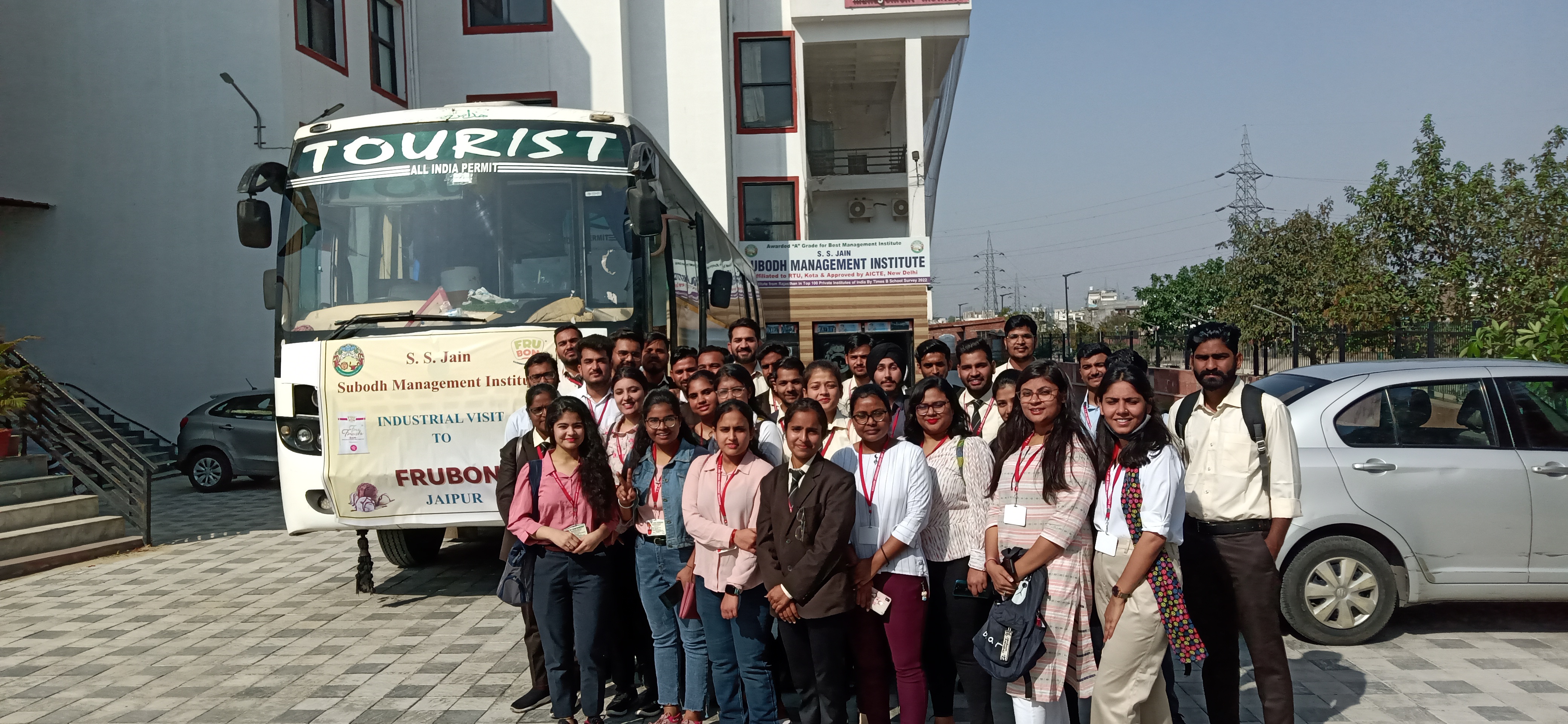 S. S. Jain Subodh Management Institute organized Industrial Visit to FruBon Dev Milk Products Pvt. Ltd. on 28th February, 2023. The students gained knowledge about production process of Ice-cream, paneer, ghee, packaged milk, flavored milk, etc. The students learnt about the basics of operations, testing, mixing, cooling, fermentation, and pasteurization etc in the supervision of Mr. Pawan Shukla, Mr. Naveen Singh and Mr. Mohd. Shaheed from FruBon, Manager of the unit coordinated the whole visit. Students were divided into two groups for understanding the process of making milk, curd and by-products. Both the groups were headed by Mr. Mohd. Shaheed. The plant was fully-automated and an interactive session was held between students and Head-Quality. Students asked their queries related to, cleaning of instruments and tanks, safety measures, segregation of milk at village level etc. The hospitality of Frubon was effective and was congenial. Indeed it was a very knowledgeable visit.