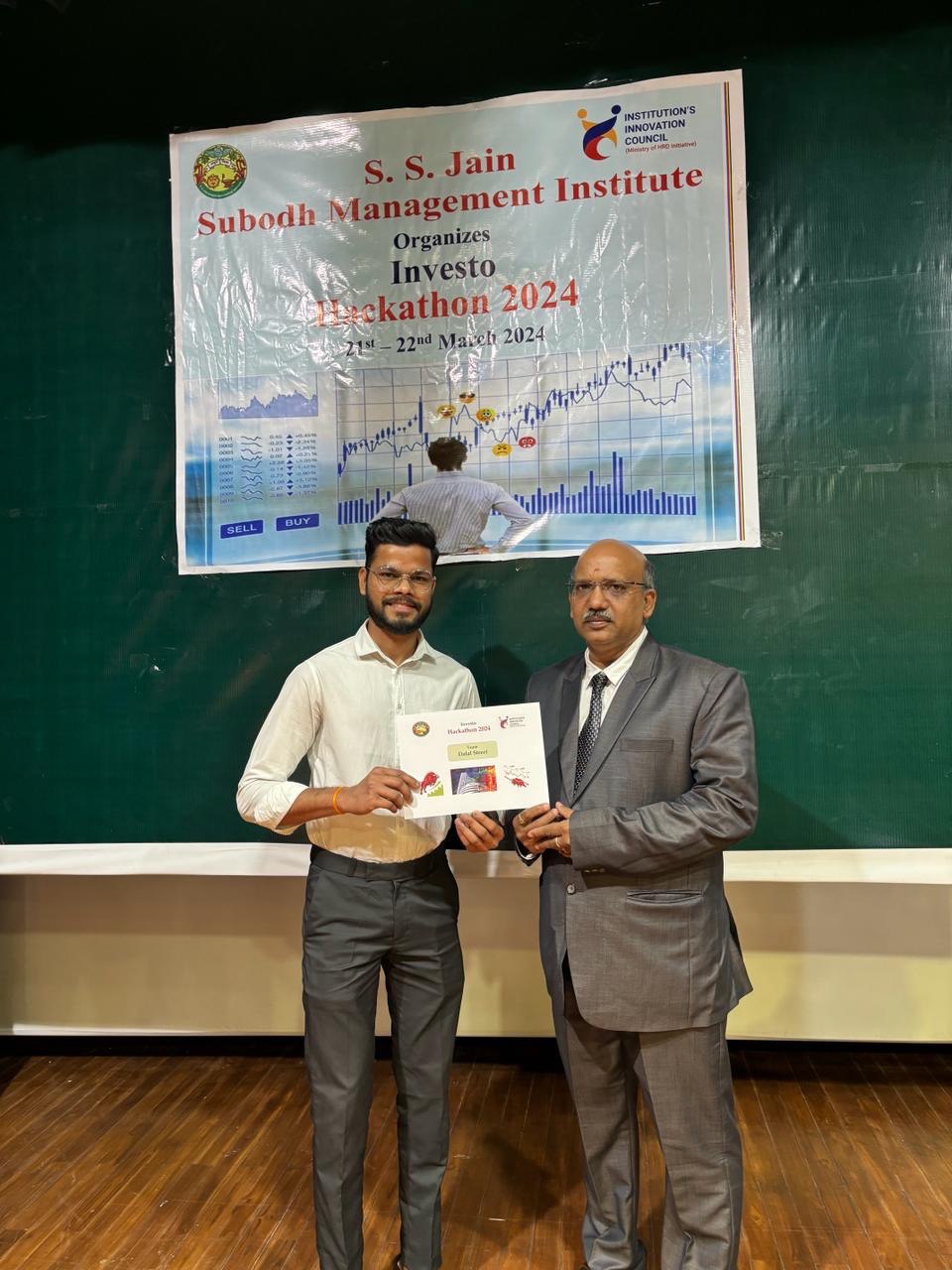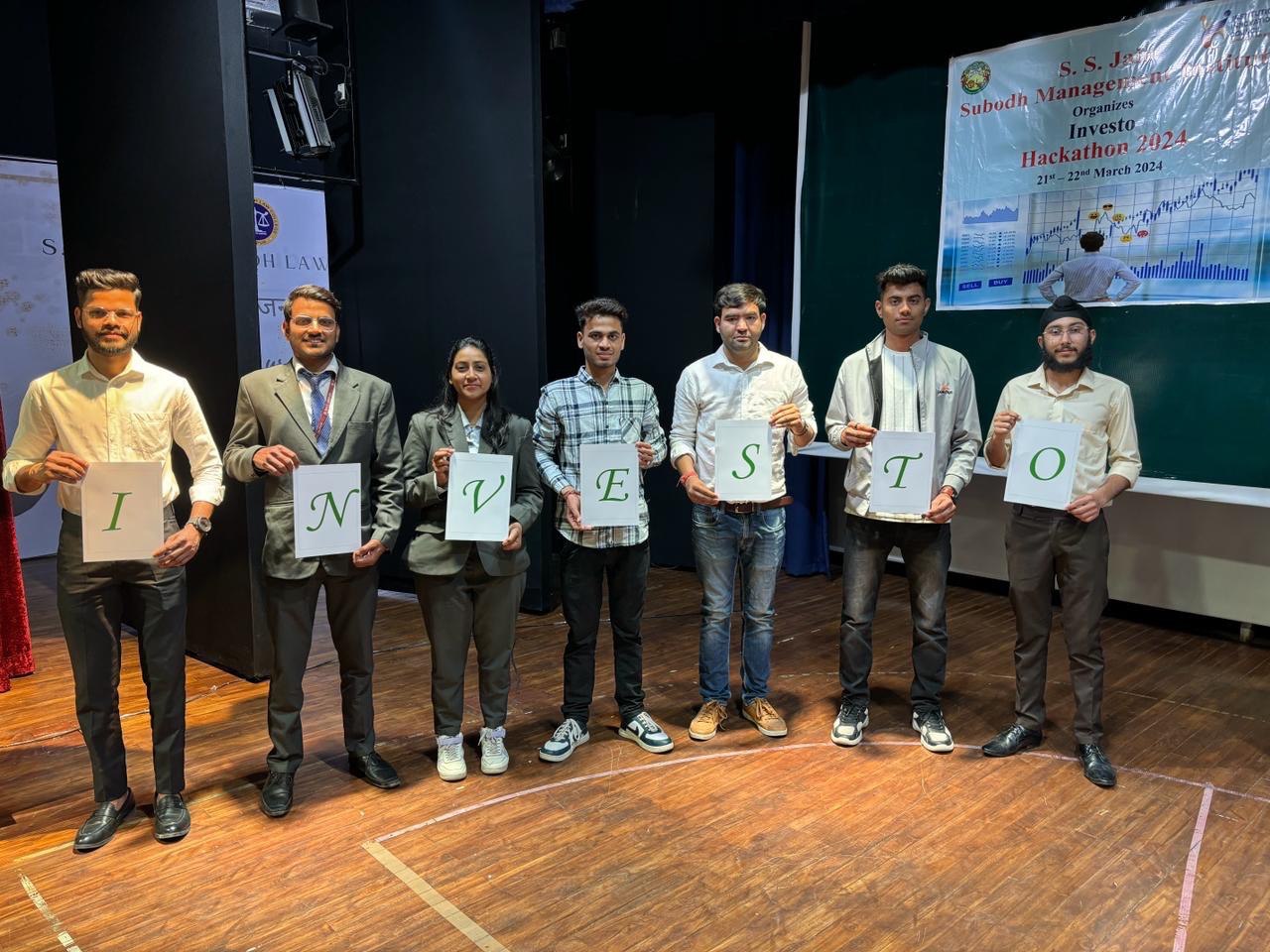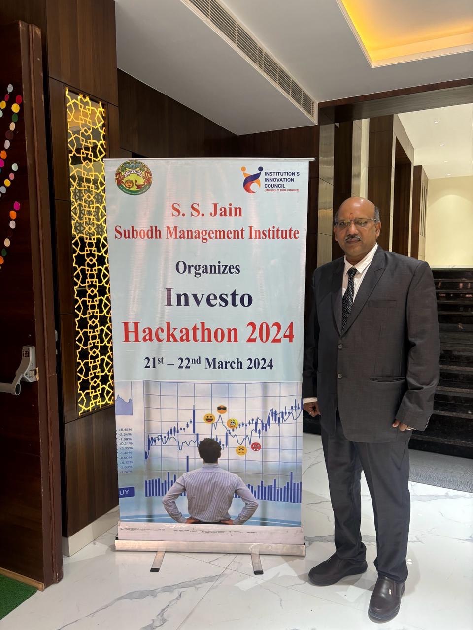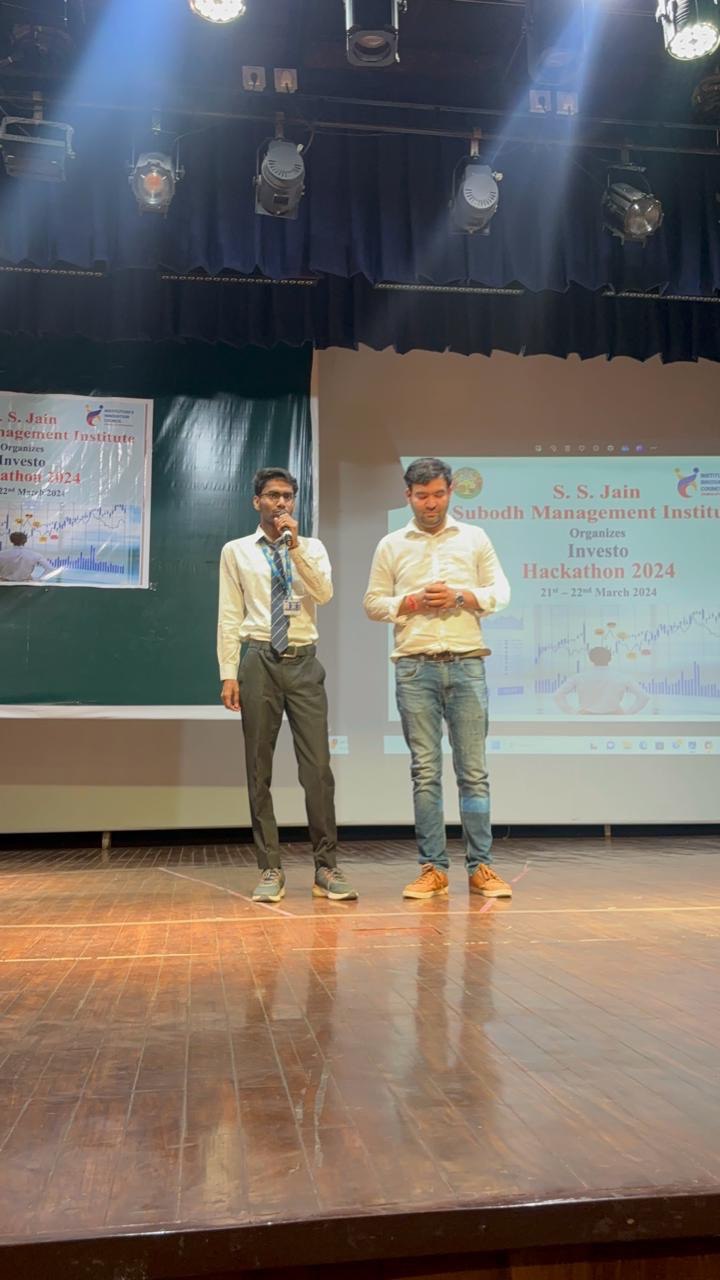 The Institute’s Innovation Council at S. S. Jain Subodh Management Institute organized a two days Inter-Institutional Investo Hackathon from 21 st to 22 nd March, 2024 in the college premises. The purpose of a hackathon was to promote sound investing and trading practices among various professional college students. It will help them to build the understanding about the working and trading strategies of the stock market and procedure of trading and how to apply investment strategies for wealth creation. It was an event to get a tide of ideas from participants and get exposure to industry practices and understand how things work behind the scenes.