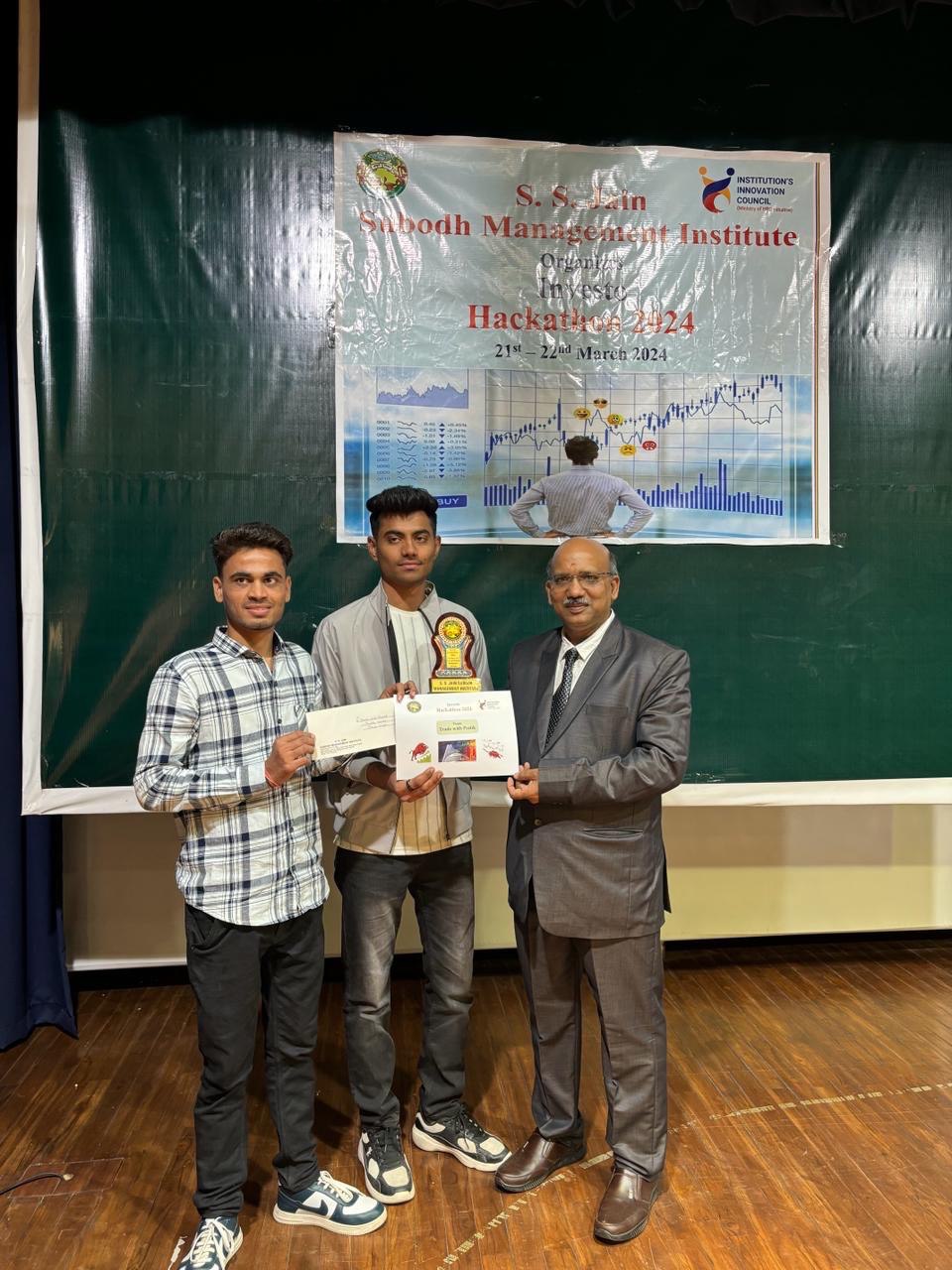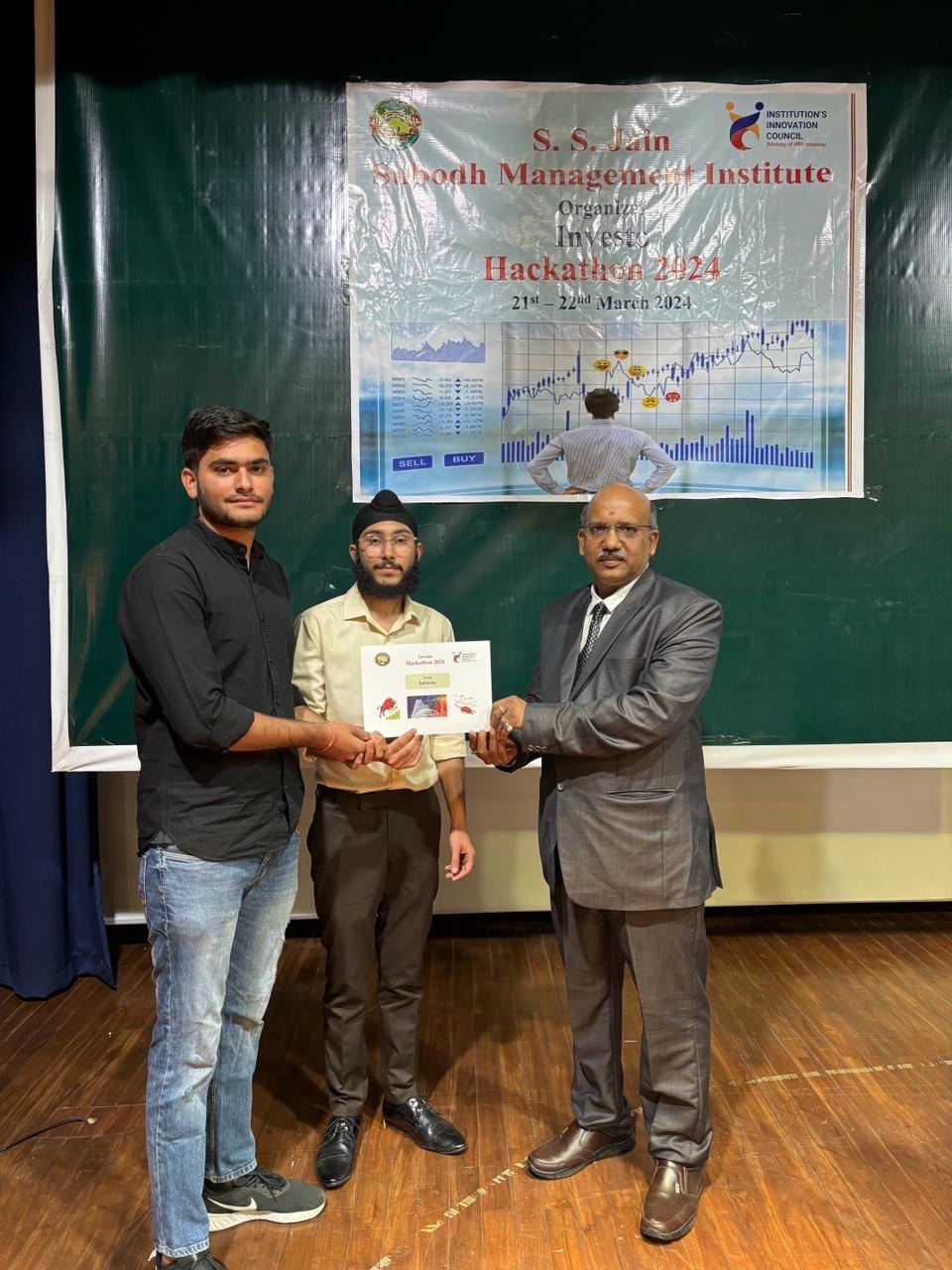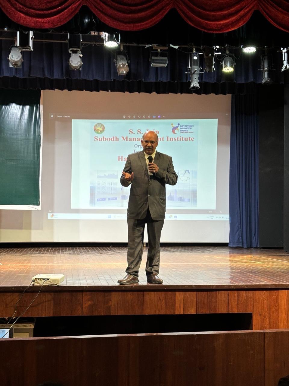 The Institute’s Innovation Council at S. S. Jain Subodh Management Institute organized a two days Inter-Institutional Investo Hackathon from 21 st to 22 nd March, 2024 in the college premises. The purpose of a hackathon was to promote sound investing and trading practices among various professional college students. It will help them to build the understanding about the working and trading strategies of the stock market and procedure of trading and how to apply investment strategies for wealth creation. It was an event to get a tide of ideas from participants and get exposure to industry practices and understand how things work behind the scenes.